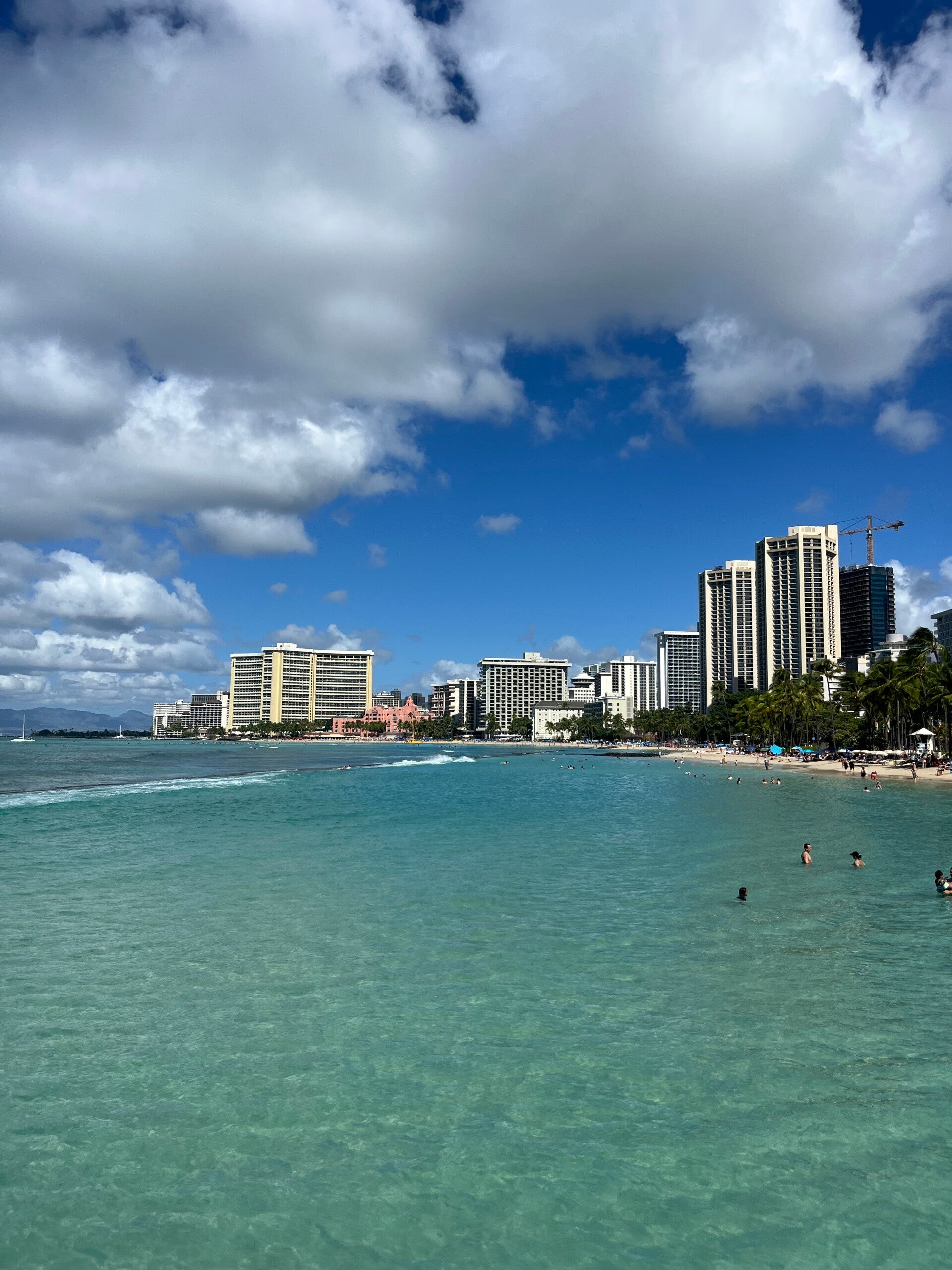 Unsere Reise beginnt am Flughafen DUS, voller Vorfreude und gepackter Koffer. Es ist ein sehr sehr langer Weg nach Honolulu, ca. 11.800 km mit sehr vielen Flugstunden und viel Jetlag. Wir fliegen über London nach San Francisco und dann zum finalen Ziel. Der Jetlag holt uns bereits in der Wartehalle von SFO ein und ich bin nur noch froh, dass ich schlafen kann. Außer einem angenehmen Schaukeln über den Wolken, bekomme ich nichts mehr mit und träume von Hawaii. Im Landeanflug auf Honolulu realisiere ich, dass ich bald im "Paradies" bin und kann mein Glück kaum glauben, dass ich es nach endlosen Stunden Flug, einer Zeitdifferenz von 12 Stunden, einem unglaublichen Jetlag mit meiner Tochter im Hotel in Waikiki Beach ankomme. Ein Tag, der gefühlt nie vergehen wollte, denn unser Tag hatte ca. 35 Stunden und er war immer noch nicht beendet, die Uhr schlug immer noch keine 0 Uhr.....völlig erschlagen sind wir selig im Bett gelandet und haben den nächsten Tag mit einem Kaffee begonnen, der zum Glück im Hotelzimmer gekocht werden konnte. Ich wusste von einer anderen Reise, dass Waikiki ein teures "Pflaster" ist und daher hatte ich meine Tochter vorgewarnt, dass die Suche nach einem Frühstück mühsam werden könnte. Wir fanden eine günstige Variante, in dem wir uns einen heißen Hot Dog mit Wasser zum trinken gekauft haben und diesen am Beach gegessen haben. Leckerer konnte das Frühstück bei dieser atemberaubenden Aussicht auf ein türkises Meer und einem weißen Strand und dem Vibe des Surferparadieses nicht sein. Wir genossen jeden Happen! Schnell noch Fotos gemacht und dann wurden wir abgeholt, es ging auf eine Kreuzfahrt mit der NCL Pride durch Hawaii und wir ahnten noch nicht, welche atemberaubende Erlebnisse wir haben werden.